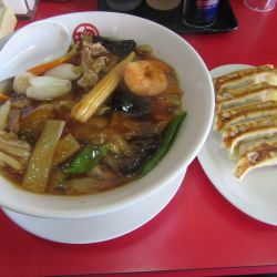 硬めの自家製麺の上にたっぷり具材の熱々のあんがかかっていてました。具材は大きめでどれも新鮮でシャキシャキ。麺はそれ自体の味付けが強めで独特なものでした。寒い日にいいですね^_^