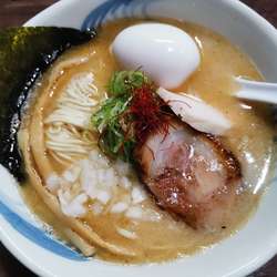 ネットでインパクトのあるラーメンの写真を見て気になっていた店。焦がしラードが入って黒い色のスープだが、基本は鶏白湯のようである。鶏白湯ラーメンはマイルドな味で食べやすい印象があるが、このらーめんは焦がしラードの存在でかなり濃厚な味。自分は好み。チャーシューもいい味で自分の中では、かなり満足度は高い。食べ終わっても焦がしラードの後味がしばらく残った。