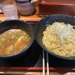 表記を注文。他にも激辛つけ麺、麻婆つけ麺、ラーメン等バリエーション豊富。すぐに到着。「つけ汁の器が熱いのでご注意ください。」とのアナウンス、まあ大したことないだろうとチョイと触る。!!!激アツ!!!すみませんなめてました…(湯煎ってレベルじゃない)