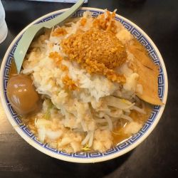 店内は(二郎系では有りえないほどの)和やかな雰囲気。後客グループ内のお兄さん、店内の有線で流れていた「未来予想図II」を熱唱。