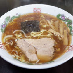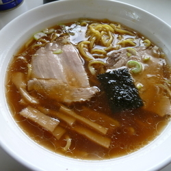 表題を口頭注文で待つこと10分強。着丼です。 んっ、麺は入ってる? 辛うじて見える(笑)