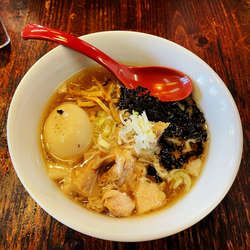 ✅豚清湯に貝、煮干、香味野菜をコトコト煮込んだ舌に染み入る澄み切った朝ラーメン