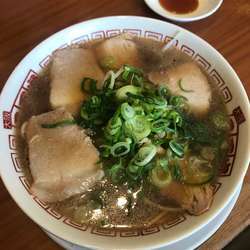 見た目は、まさに第一旭。ラーメンなのにチャーシューバラ盛り。真ん中にネギ。メンマ。麺は白ストレート麺。では、実食。