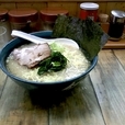 「とんこつ醤油ラーメン(650円)」@麺家 八の坊の写真窮屈な印象の店内。口頭にて標記を注文してから4分程で提供。薄っすらと豚骨の臭みはあるものの触れ込み通りのあっさりとした豚骨スープは海苔、ほうれん草、大判チャーシューの布陣から見た目は家系に見えなくもないですが方向性の違うもので、粗みじん切りネギが多めに入るのがポイントか。デフォルトの太麺は平たくプリッとした歯ざわり。他のレビューにも有るように細麺のほうがマッチするような。