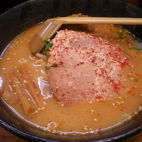 トッピングの胡麻味噌の玉を崩しながら食べると