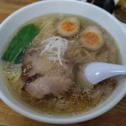 塩らーめんに煮チャーシューは最高に合いますね。はじめはあっさりした少し油で熱めのスープですが、煮チャーシューの出汁が溶け出して後半は少し味が変わる... 続きを見る