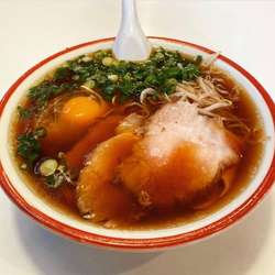 あっさり醤油ベース。とても美味しいスープです。素晴らしいコク。細ストレートで若干柔め。チャーシュー3枚、もやし、ネギ。シンプルなラーメンが美味さを感じる一杯。