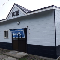 ・店の外観:薄青色の壁?看板?、青い暖簾。