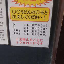 | メニュー | メニューの写真を見る あつかけうどん小310円大410円 |