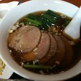 ラーメンの具は、粗めに細長くカットされた白葱と短冊チャーシュー。辛味油に和えられており、量は適度に多め。
