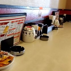 12時少し前に訪問。他客は5-6名。店内は、適度なスペースにテーブル席と壁に対面するカウンターが設けられている。窮屈さや気になるような不潔感は無く、居心地良好。中国人と思しき女性店員の接客は手慣れた感じ。