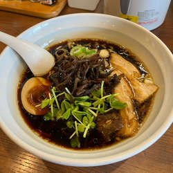 砺波方面で仕事が一段落したときにどうしても富山ブラック食べたくなり、リサーチした結果発見したお店。富山ブラックのしょっぱさにしてはややマイルドな感じで、比較的万人受けしそうなスープ。個人的には富山ブラックにはしょっぱさを求めてるのでもう少し塩気がある方が好きだが、また食べる機会があれば食べたくなるとは思う。待ってる間はワニワニパニックなどのアナログな玩具で時間を潰せる