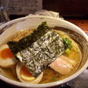 初めて食べる感触。麺にはそば粉練り込みの平打ち。鴨出汁が全面に出た感じ。そばに相当近いけど、味玉、塩味、海苔のせで、大変さっぱりした新鮮なラーメン。美味しかった。