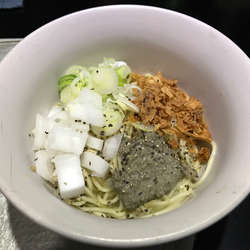 濃厚なトッピングに負けないもっちり食感の太麺が絶品!