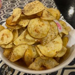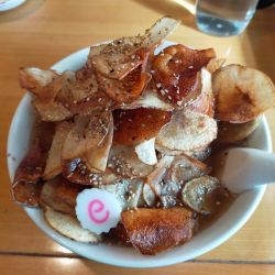 自家製のポテトチップスがのったらーめんはインパクトがあります。スープは透き通った塩らーめんベースのものであっさりしています。胡椒とバターをポテトチップスに使っている事もあってかスープは胡椒とバターの風味が強いです。これと言って特徴のないスープですがそれなりに旨味があってまあまあです。