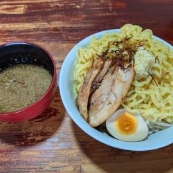 14:00過ぎだったので空いてました。酸辣湯麺食べたかったですがないので久々こちらの渡カニのつけ麺冷盛り の大盛に。