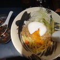 大人しめの味付け。麺の強さが勝ち気味。