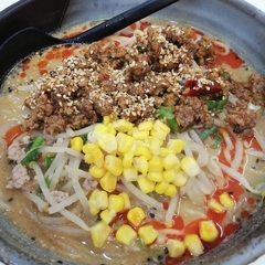 甘めな味噌ラーメン、自分は、もう少し塩辛いイメージで食べたら、いままで食べたのと違って、新鮮でした、甘めな味噌でも、薄味ではなく丁度よく美味しい麺は中細くらいかな、もう少しボリュームが欲しい