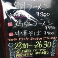 | 備考 | 金曜日と土曜日は11:00~26:30迄ラーメン専門店になります 提供は鯛ラーメン800円(数量限定)・鶏塩ラーメン750円・中華そば700円 夜限定のラーメン専門店。取り敢えず11月一杯でひとまず終了です。 |