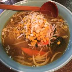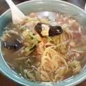 18/8/10訪問。過去分ですが、閉店しているので、足跡を残させていただきます。カレーラーメン(600円)を。スープは、ライトな醤油ベースで、カレー粉を溶いたスタイル。カレーオンじゃないのね。麺は、中太ストレート。かなり、柔らかい。具は、もやし・ニラ・コーン・長ネギ。鉄鍋を振った炒め野菜。これはシャキシャキで美味い。肉類は不使用。コーンもたっぷりで、穴あきレンゲが欲しくなる。
