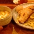 麺はとうかんやさんと同じタイプの太麺です。今回あつもりで頼みました。出てきた麺は小麦粉の香りが。あつもりだとこんな感じなのかな〜と思いながら、つけ汁へ。つけ汁は白菜が結構入ってます。白菜の水分のためか、味は若干薄く感じました。麺自体はそこそこ歯ごたえがあって美味しいです。チャーシューは炙られていて香ばしさが楽しめました。