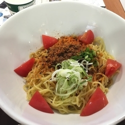 麺は、ぱつっとしたストレート細麺。具は、青菜・もやし・挽肉。薬味に、長ネギ。挽肉は、柔らかくて美味い。