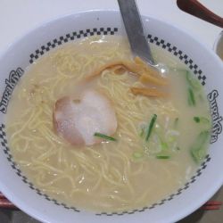 スープは豚骨ベースに和風だしが入っていてこってりと