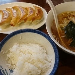 「半ラーメン、小ライス、餃子」@赤城ラーメンの写真このセットでワンコイン、500円安いんだよね?満足ですね(^∇^)✋