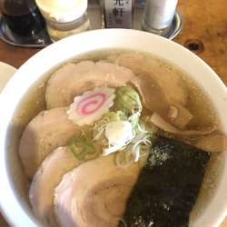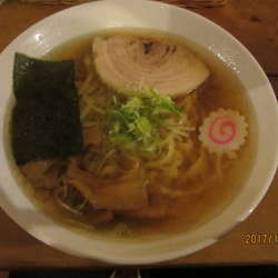 佐野出張の帰り、駅に着いて、発車まで20分、駅前のお店に直行、急いでもらって、2分で着丼、5分で完食、ほぼ完飲。鶏ガラと昆布だと思うけど、出汁がすごく旨い。手打ち縮れモッチリ麺に程よい醤油としっかりしたチャーシューが美味しい。味玉なかったけど、超短時間で満足。