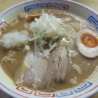 何だかんだで1時間ほどチャリに乗て久しぶりのコチラへ。券売機で黒豚骨ラーメンと¥100トッピング券を購入。券を渡してカウンター席に座り、味は醤油、麺はハリガネ、トッピングは味玉で注文。