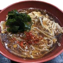 本日はコチラ「ゆで太郎 築地2丁目店」へ伺い、期間限定で提供されている「肉あんかけ中華」を。更にはクーポンを利用して「三陸産わかめ」を頂いて参りました。わかめ入りのサンマーメンって見た事無いですよね?