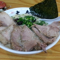 拝島に2軒ある「やきとりおおしば」の兄弟店。券売機にて食券購入。製作中に背油を網と勺でしごきスープに浮かせてた。出てきたラーメンは醤油なのに意外に薄い色。塩ラーメンのよう。麺は中細めストレート。スープはこってりかと思いきや意外にあっさり。豚骨を低い温度で煮出して昆布を合わせている?喜多方のややこってり風。味は濃いめ。具は「肩ロースのチャーシュー」厚めで柔らかく旨い肉、「大きめの海苔」、「細ねぎと白ネギ」の小口切りダブル、「木耳」、少ないけど「しゃっきりのもやし」。卓上には「生ニンニク」と絞り器にバターナイフ。ニンニ... 続きを見る