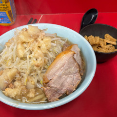 | 備考 | 並んでいるときに店員さんから麺量と硬さ(硬め・普通・柔め等)を聞かれることがあります。 麺の「小」「大」と「硬め」「柔め」など注文するものを伝えてください。 また、着席前にトッピングを聞かれることがたまにあるので、聞かれた場合は伝えてください。 コールの「アブラ」は黒アブラという焦がした感じのアブラです。 白アブラという固形(カタマリ)脂もあり、コール時に店員さんに伝えれば変更可能です。 ※マークがついている「まぜそば」・「つけめん(夏期限定)」は麺の硬さ変更不可 トッピングの「辛め」が「からしマヨネーズ」になります。 2013年9月3日、リニューアルオープン。 「ラーメン二郎 三田本店」から暖簾分けした店主が起業した(有)エヌエス・プランニングが運営する異色店舗。他にラーメン二郎 歌舞伎町店も同社運営。 |