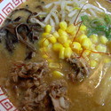 ザラついた舌触りのある味噌はほんのりと甘味があって濃厚。背脂が多めに浮いてます。