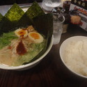 この日は7種類から選べるとも事で、表題のラーメンを選びました。店員さんがライスか大盛りも付くとの事で大盛りに!