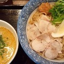 【注 文】濃厚鶏白湯得つけ麺(中)+半鶏めしセット(900円)。
