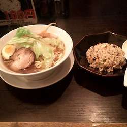 今日は豚骨醤油をオーダー。大盛りはランチで無料。またチャーハンが100円になるので