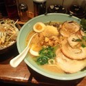 調整調整…ニンニク投入で酸っぱさを丸め、中太硬麺をたいらげて細麺の替え玉にチェンジ!
