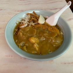この日は江東区で午後夜間の通し練習です。しかも会場が古石場文化センターというあまり駅近でない場所でした。いろいろリサーチした結果、京葉線の越中島駅から歩いていくことにしました。途中のラー食はこちらです。ラーメンの上にカツカレーがかかったビジュアルに惹かれました。