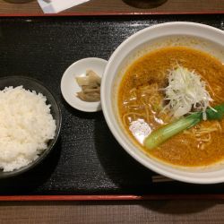 ラーメン定食と担々麺定食の値段が同じだったので、担々麺にしてみた。山椒が効いてて、想像してた味とは少し違ったけど美味しかった