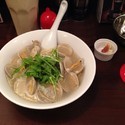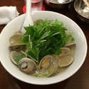 18/1/12訪問。過去分ですが、閉店しているので、足跡を残させていただきます。濃厚貝出汁ホンビノスラーメン(1058円+席料300円)を。スープは、貝出汁が分かりやすい清湯。塩加減・油具合も良く、良いバランス。麺は、しなやかな中太。手揉みのような、不揃いに縮れた麺。具は、水菜・ホンビノス貝。ホンビノス貝は、気前よく15個くらい入っていた。ちなみ夜だと席料が発生するので、ここ数... 続きを見る