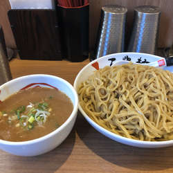 ちょうどつけ麺が食べたい気分だったので、券売機でつけ麺を見ると、濃厚魚介つけ麺、黒濃厚魚介つけ麺、赤濃厚魚介つけ麺があるので、赤をポチッとします。麺量は2玉まで、並、大盛、特盛が同一料金との事で1.5増しの大盛りでお願いします。