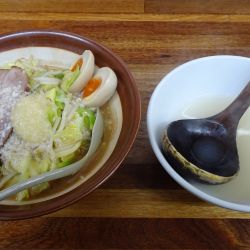 狙っていた味噌ラーメンをお願いし、10分ほどで割スープと一緒に運ばれてきました。