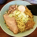 11:30 5名待ち。 入ってすぐ左の券売機でチケット購入 、カウンターに座り 待つこと 7分 ご対麺です。 大きめのチャーシューに温泉玉子、良くかき混ぜて 一口 醤油 アブラが良く絡んで その中に ほんのり香る鰹節が 旨いです、麺は中太麺で モチモチ ツルツルで歯応えあり。刻みチャーシューは 桜チップの香りがして これも旨し。 大きめのチャーシューも 柔らかで 旨い... 続きを見る