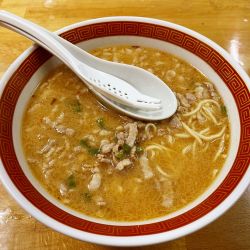 レビューからだと下館ラーメンの老舗、盛昭軒の麺らしく、コシのある中細麺がいい感じです🍜小さく刻まれた豚バラの脂が溶け出し、あっさり目のミソスープにコクと旨みが増します✨挽肉とは違い食感が感じられ、ピーマンの食感も良いです🫑注文後に店主がすりおろしてくれた青森産のニ... 続きを見る