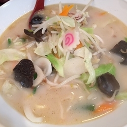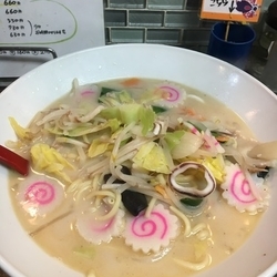 福島「大洋軒」の「長崎ちゃんぽん」、ランチタイムはここの鉄板の唐揚げ定食を頼む人が殆どですが、ちゃんぽんもおススメです。マイルドなトンコツスープはボリューム凄くて大満足。