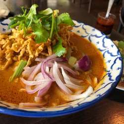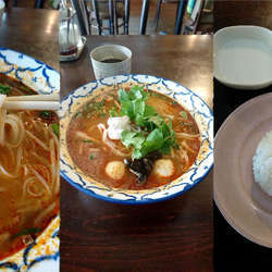 てゆかトムヤムラーメンゎトムヤムクンスープに米粉麺の組み合わせ…てか巷で良くあるハーフサイズかと思いきやモロに大きなドンブリのフルサイズで食べ応えゎ満点♪ んでスープゎ辛さよりも酸味のほが強め…極細の米粉麺ゎ適度に固めで( ゚Д゚)ウマー♪...因みに麺量ゎ180㌘近くゎ... 続きを見る