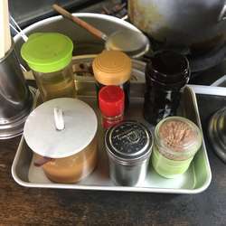 冷房とサーキュレーターが回っているものの扉は解放されている。ガスコンロの目の前に座ってしまったので暑い暑い。