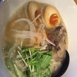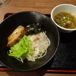 少しして写真の一杯が配膳されました。麺は中くらいのストレート麺、つけ麺にしてはやや細めに感じられる麺です。全体に白っぽい色... 続きを見る