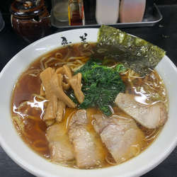 生姜の香る濃口醤油ベースのスープが越後長岡生姜醤油ラーメンだそうです。確かにパンチとなって生姜が効いています。麺は、中細縮れ中華麺。このスープと相性が良いと思います。具材は、シナチク、小ぶりのチャーシュー3枚、ほうれん草、海苔、刻みネギ少々。斬新なテイストにサプライズです。(再掲)
